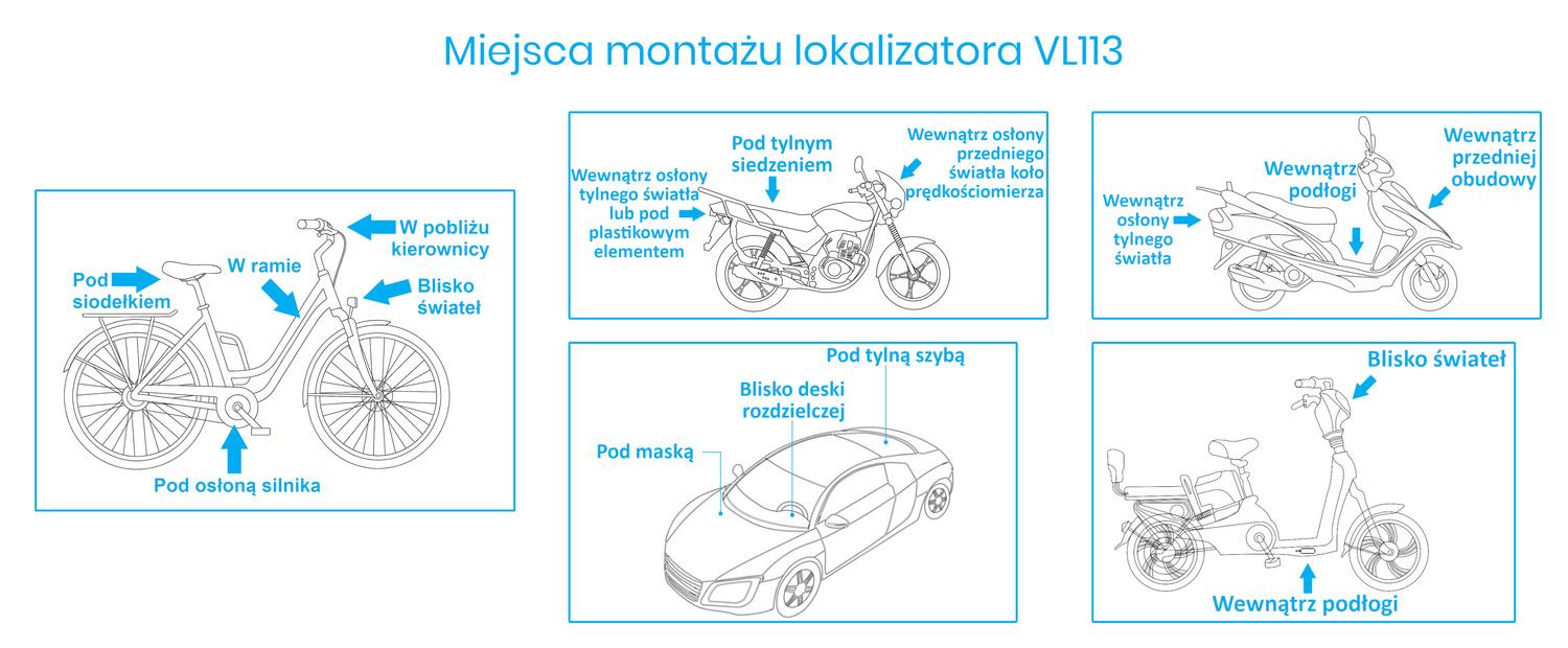 VL113 LTE – dyskretny lokalizator GPS do ochrony pojazdów. Samochód, rower, hulajnoga, skuter. Wysoka precyzja i darmowa aplikacja mobilna.