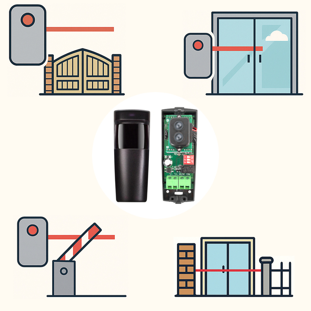 - Fotokomórka ma zastosowanie w automatyce bram, systemach zabezpieczeń i alarmach. Po przerwaniu wiązki lasera czujnik przełącza przekaźnik wyjściowy (NO/NC), sygnalizując wykrycie przeszkody.